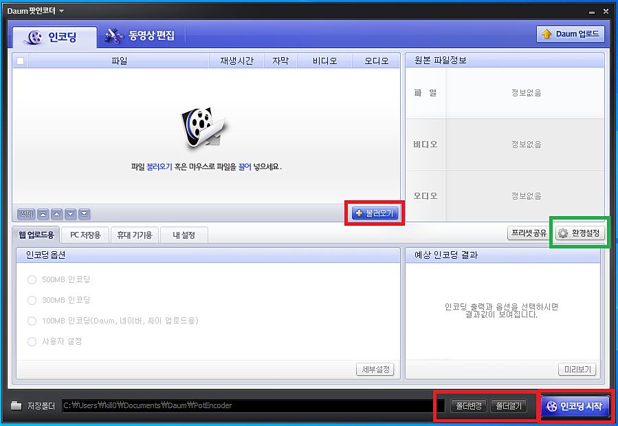 다음팟인코더는 설치 만큼이나 사용법도 간단하게 되어 있습니다.
