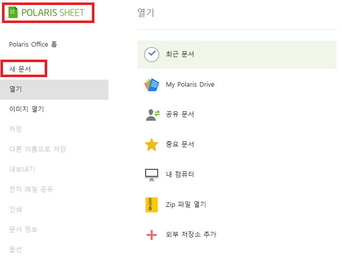 폴라리스 오피스의 Sheet를 실행해 보면 위 이미지와 같이 뜨는데요.