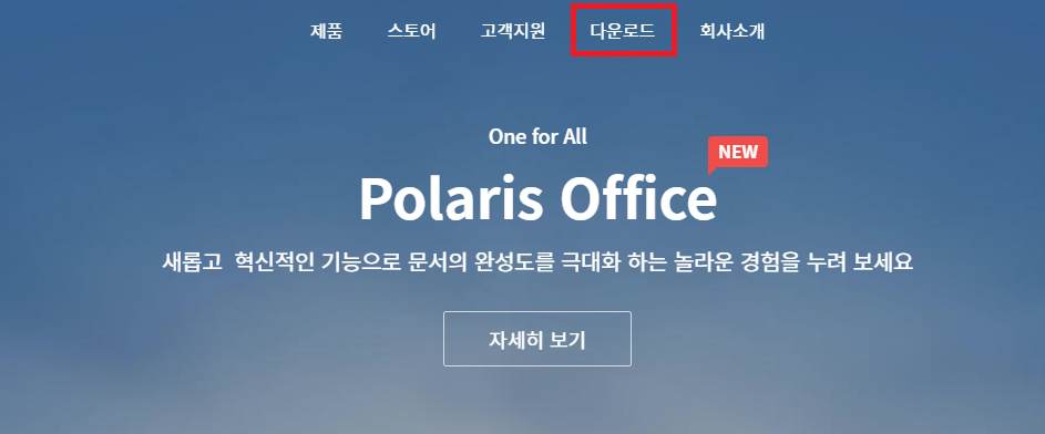 해당 사이트로 들어오면 폴라리스 오피스 공식페이지가 보이실 겁니다.