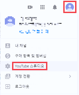 Youtube 스튜디오라고 써 있는 메뉴 보이실 겁니다.