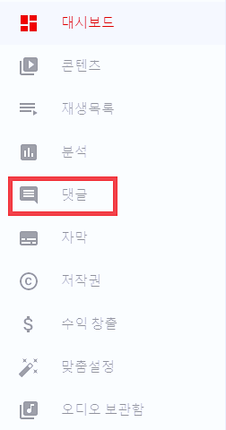 여러개의 메뉴 중에 댓글이라는 항목이 보이실 겁니다.