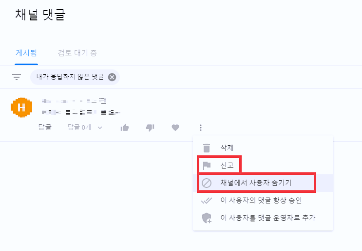 유튜브 댓글차단 및 신고하기
