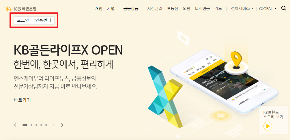 처음 국민은행 접속 후 로그인 시 개인이 아닌 기업용 인터넷뱅킹 페이지에서 로그인을 진행합니다.