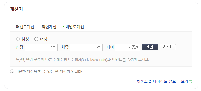 비만도 계산기를 사용하는 방법은 매우 간단한데요. 네이버 비만도 계산기에서 다음과 같은 정보만 입력하면 됩니다.